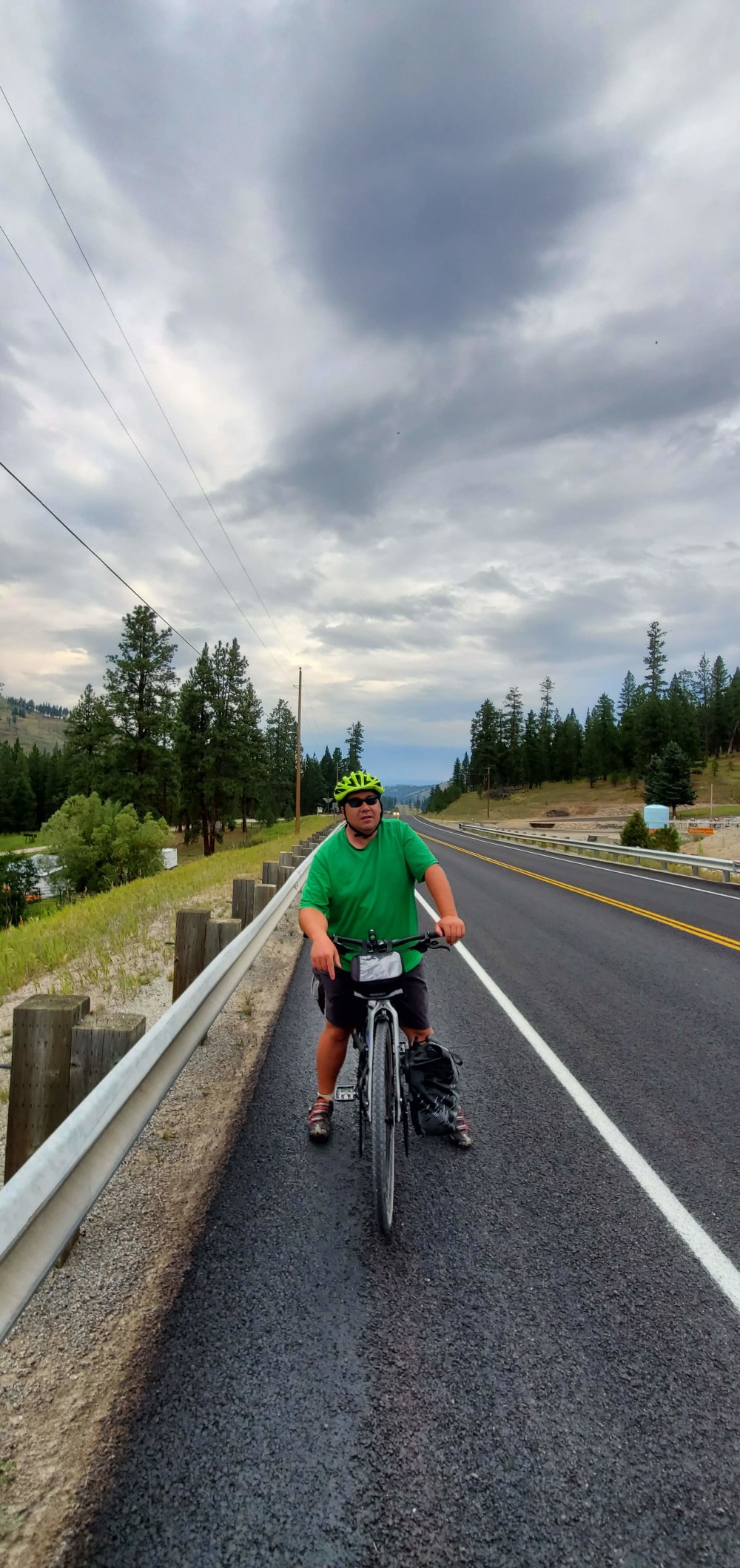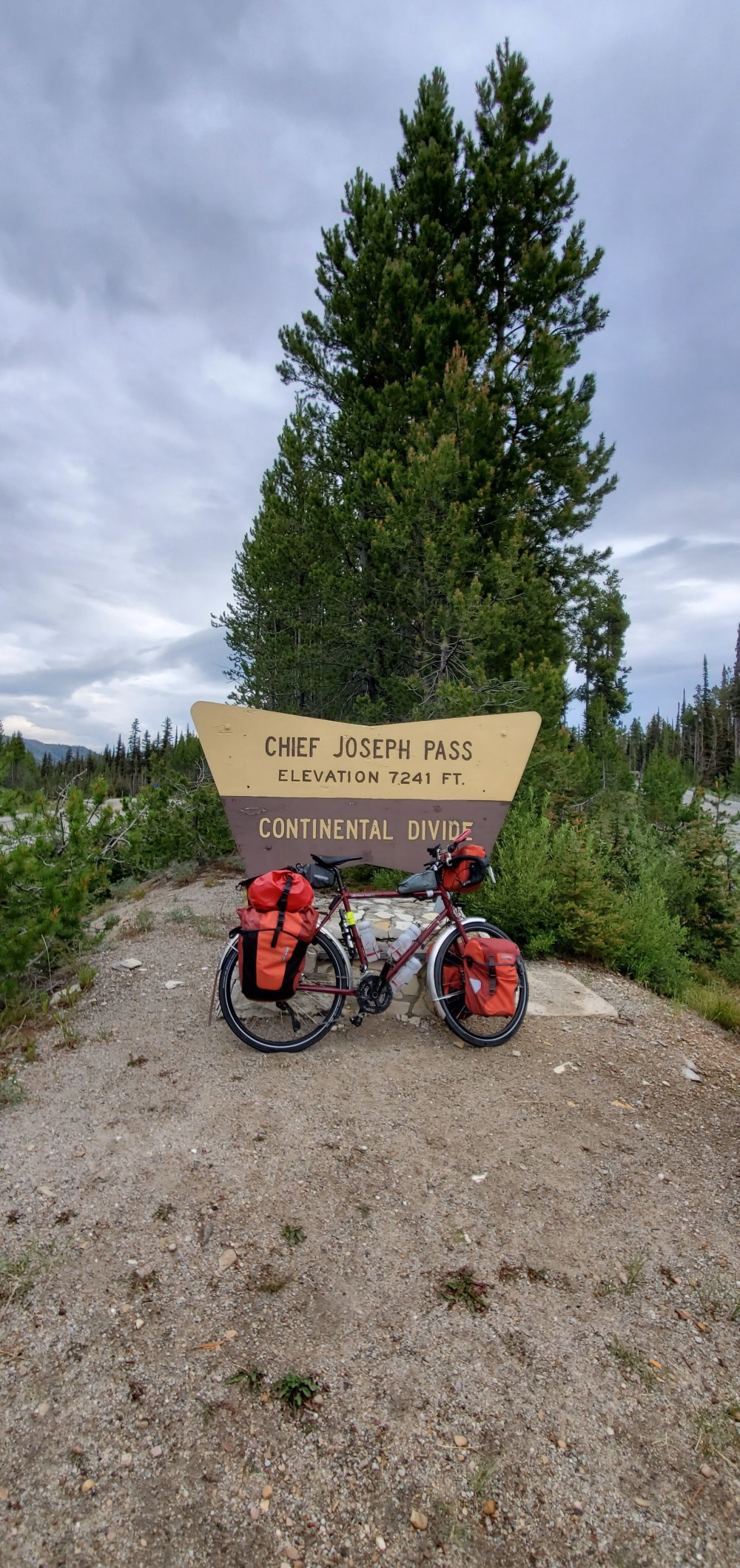 Well, today was worse! It rained for most of my ascent to the top of Chief Joseph Pass, so I was really wet when I got to the top. The descent was dry, the pavement was brand-new, and there was almost no traffic — perfect conditions for what would have been the most amazing descent of my trip. Except I was FREEZING!
