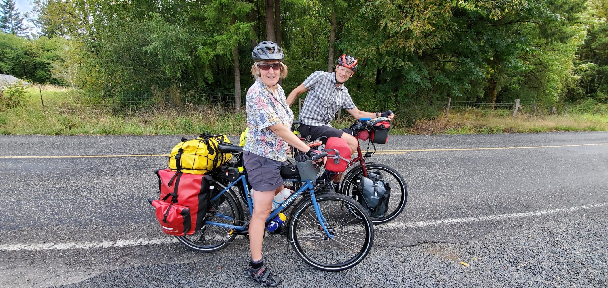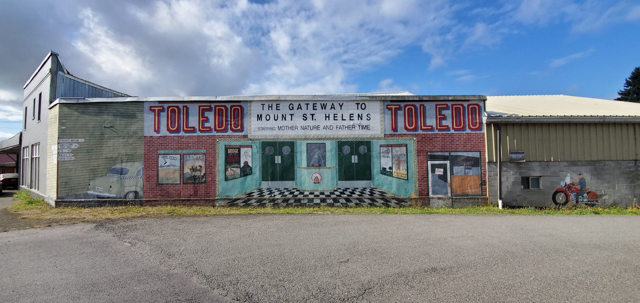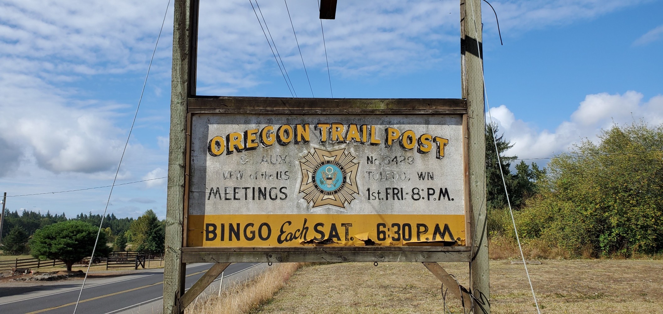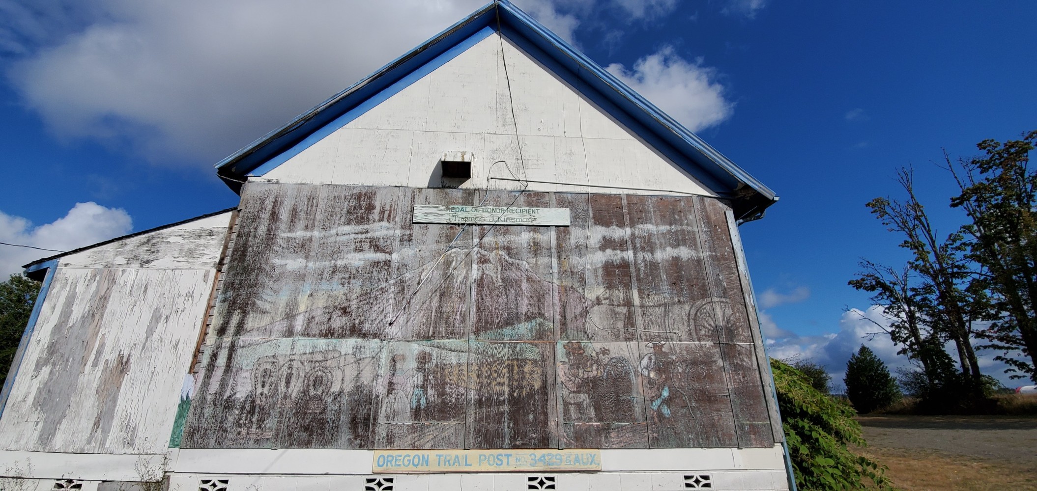 Awesome mural in Toledo.Toledo VFW sign. Sadly, this VFW is gone. http://www.chronline.com/news/last-roll-call-at-the-toledo-vfw-hall/article_80c6ca38-bb5b-11e3-bcd5-0019bb2963f4.htmlFaded mural on the Toledo VFW wall.It’s hard to tell from the picture, and I didn’t want to try to get my bike down there, but this is a HUGE old Douglas fir in Lewis and Clark State Park.Clare and Mark are headed to San Diego, California, and they are from Manchester, UK. They’re returning to England on October 31, which could be an eventful day for their country.