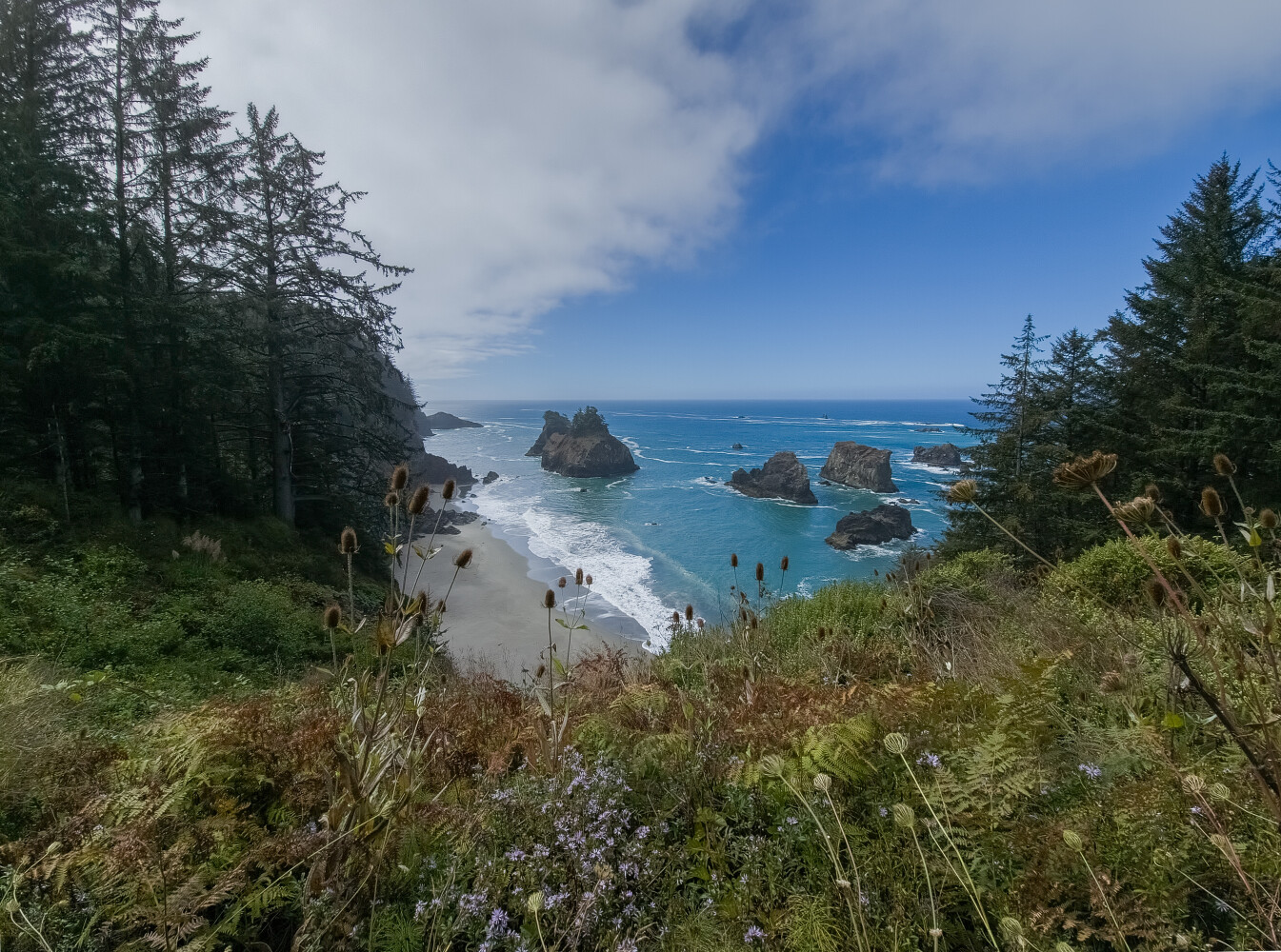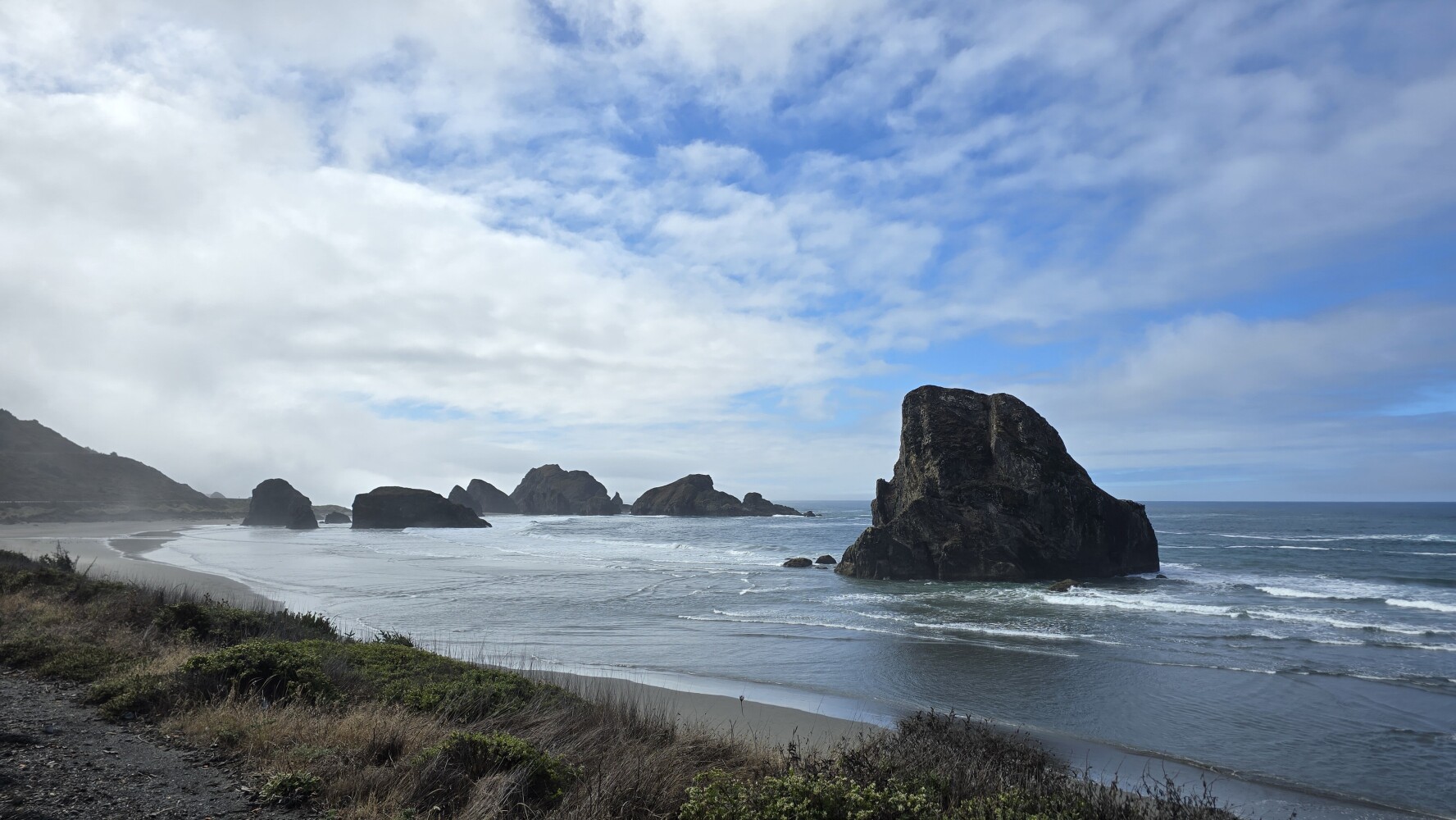 But, despite the fact that I can’t demonstrate it, those first 20 miles were amazing! First, I went through a narrow canyon, with nice trees and then had occasional spectacular views of the best parts of the Oregon coast! It was breathtaking. But, unless you’ve been there, you’ll just have to imagine it, because I have no photos.