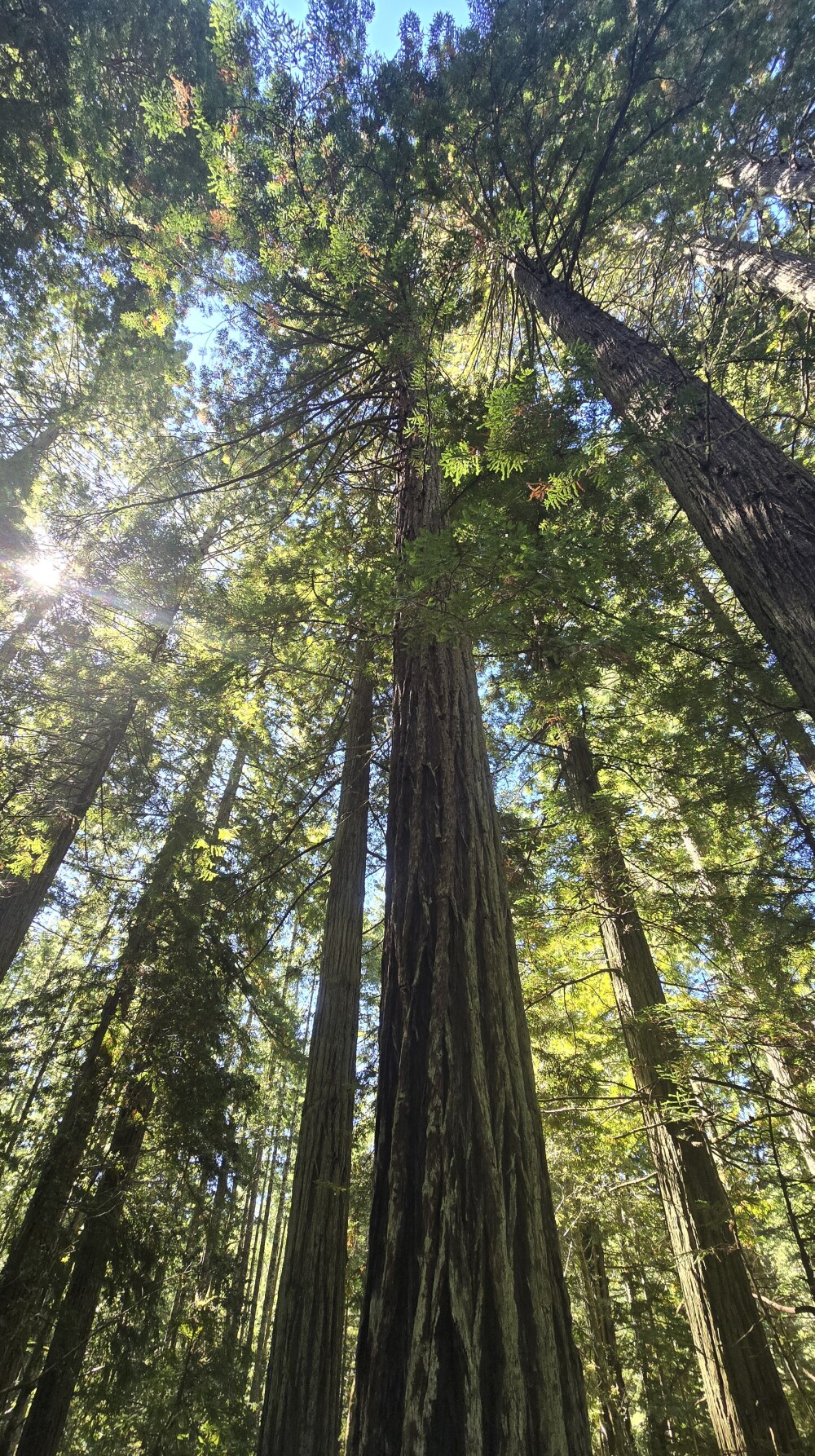 I knew today’s ride would be dominated by a long climb from around sea level to 1300 feet. This is the first place on this route where I could see coastal redwoods. They didn’t disappoint.