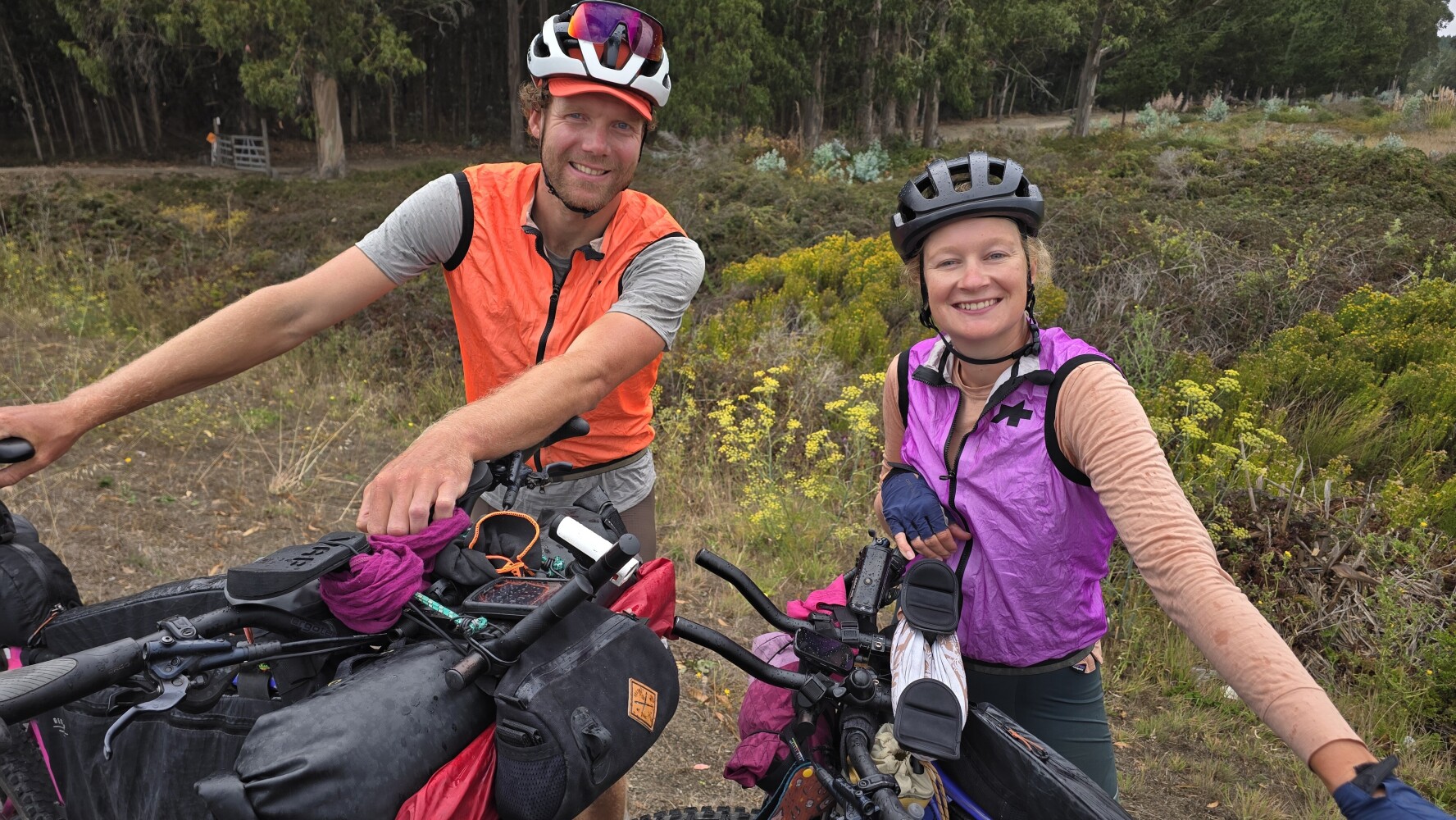I ran into two adventurers on highway 1 and crossed the road to chat with them. Geert and Anna are Dutch, and today was the last day of a long tour, starting with the Tour Divide, then crossing Arizona and riding up the California coast, ending at Stanford! They had some advice about a better detour around the Big Sur closure that I will investigate. It was really nice talking to them!