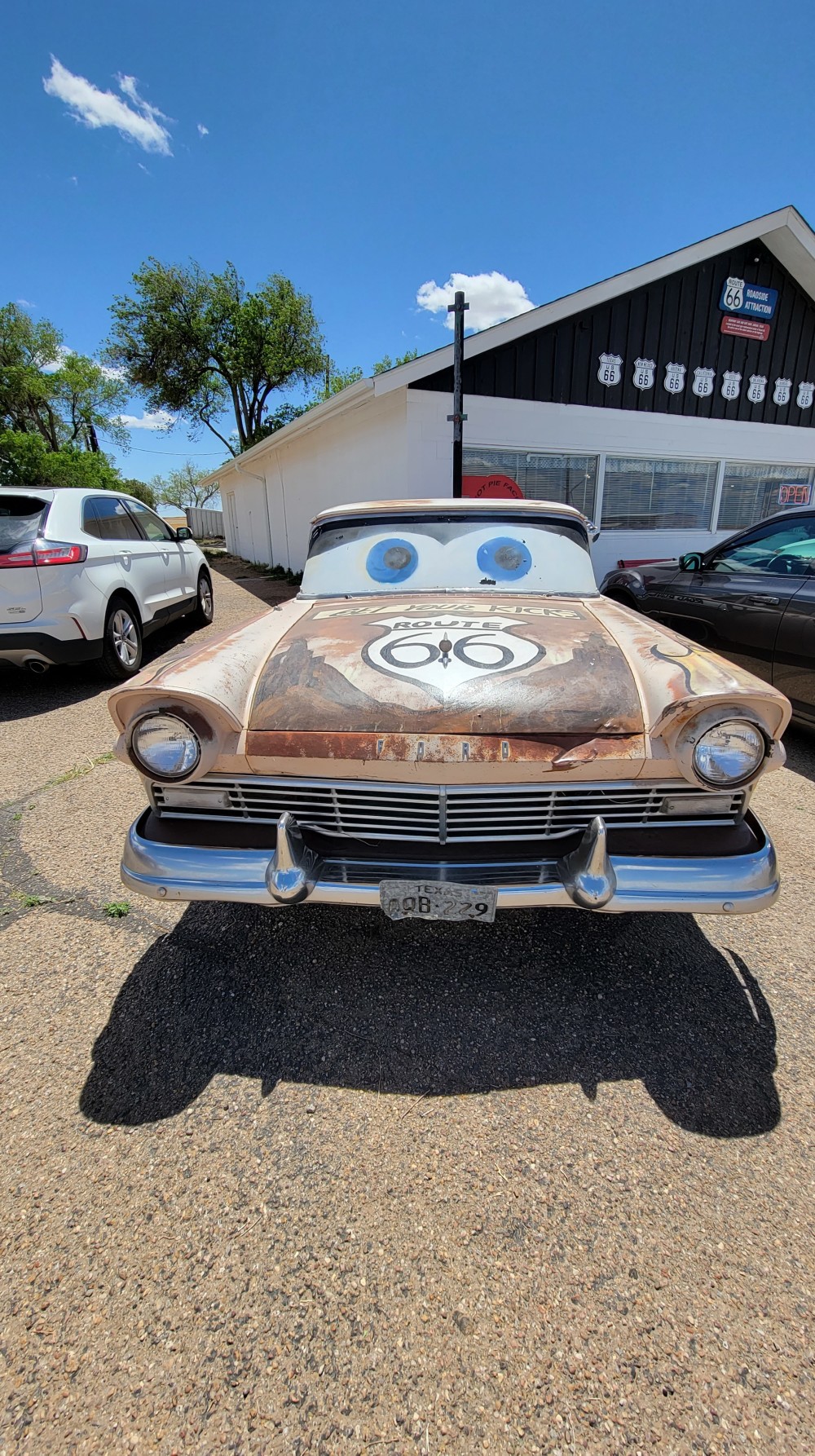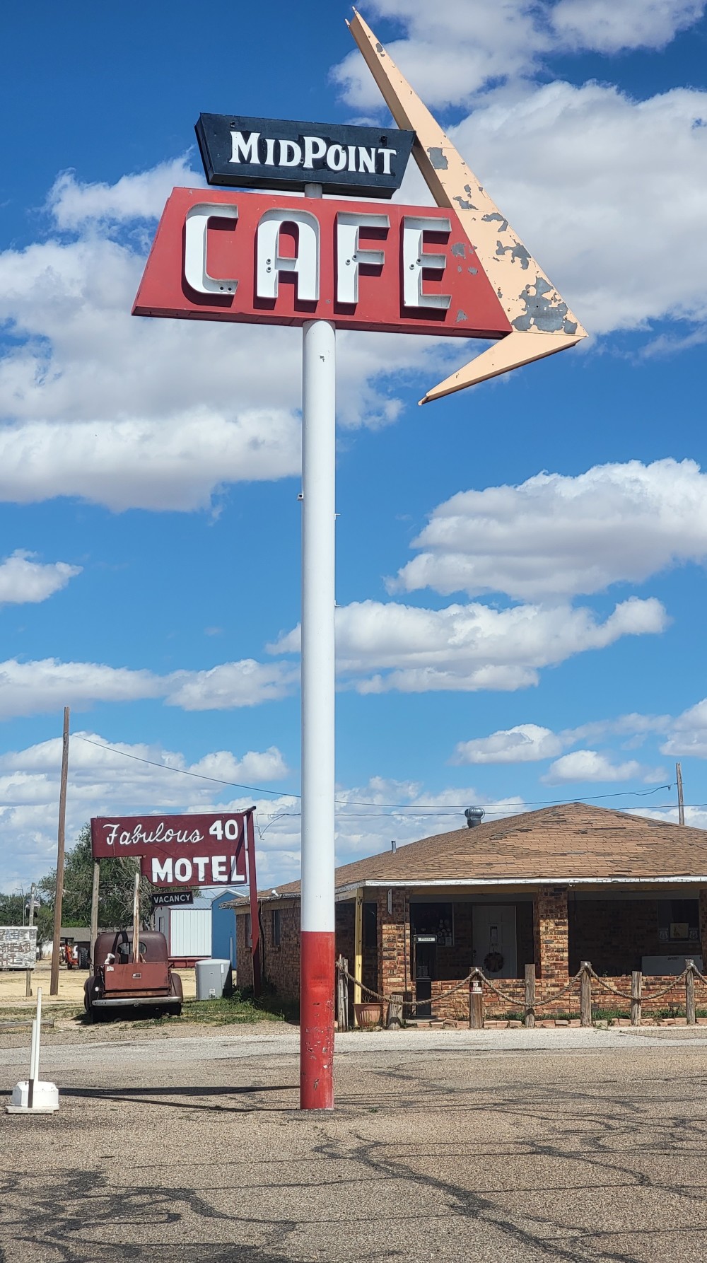 I am staying in the Fabulous 40 Motel in Adrian, which is at the midpoint of Route 66. I stopped for dinner and pie at the Midpoint Cafe, which is a famous landmark on Route 66, and it was lovely!